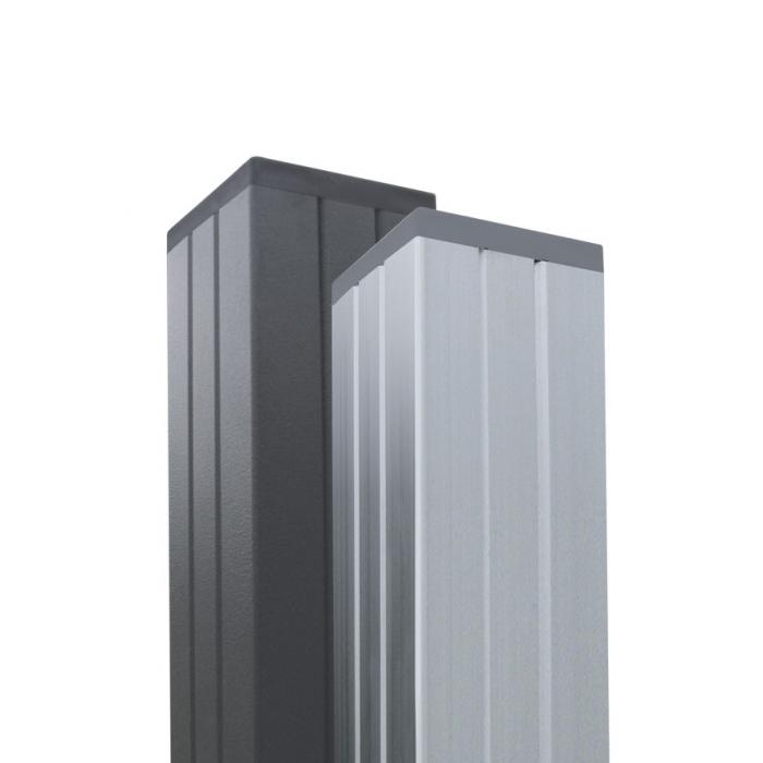 Die Pfosten sind in den Ausführungen silber und anthrazit erhältlich. Die silberfarbenen Pfosten wurden zum Schutz vor Oxidation eloxiert. Eine Pulverbeschichtung schützt die anthrazitfarbenen Pfosten.