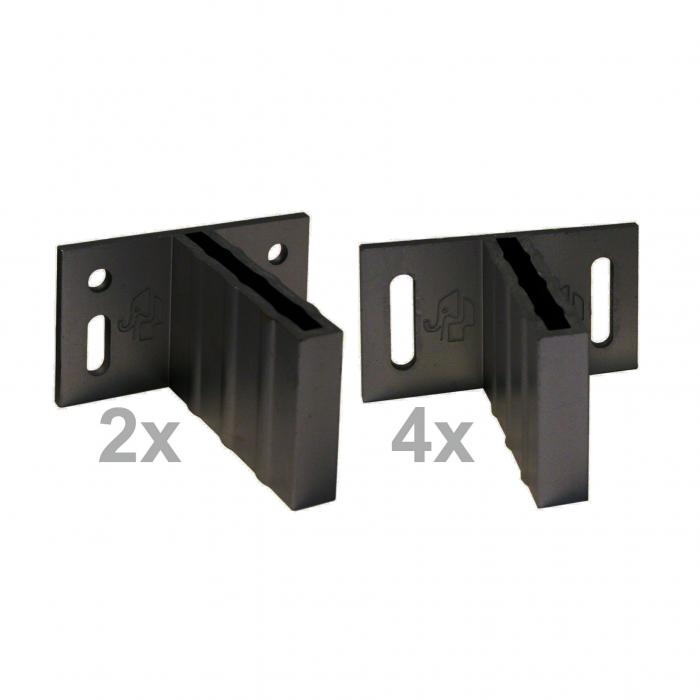 Das Befestigungsset Elephant Design für die 180cm hohen Sichtschutzelemente besteht aus sechs T-förmigen Aluminiumbeschlägen und den notwendigen Schrauben.