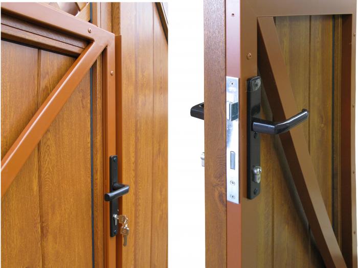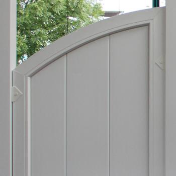 Bei der Fertigung der BasicLine-Tore wird werkseitig ein stabiler Metallrahmen auf die Rückseite eines Zaunelementes in Sondergröße gesetzt. Der Rahmen aus Aluminium entspricht im Farbton weitgehend dem Design des Zaunelementes und bleibt auf der Innenseite des Torelementes sichtbar.