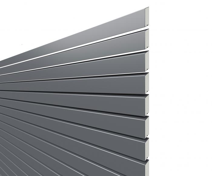 Die Profile des Zaunsystems Rhombus bestehen aus pulverbeschichtetem Metall. Diese Hohlprofile sind werkseitig ausgeschäumt. Als Farbvarianten stehen die Farbtöne Anthrazit, Silber und Lärche zur Auswahl.
