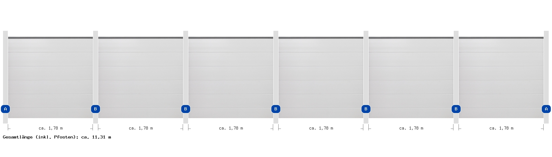 Für all unsere Zäune typisch sind fertigungs- und materialbedingte Maßtoleranzen von mehreren Millimetern pro Element. Erstellen Sie daher die Fundamente immer erst nach Erhalt des Materials anhand der IST-Maße.