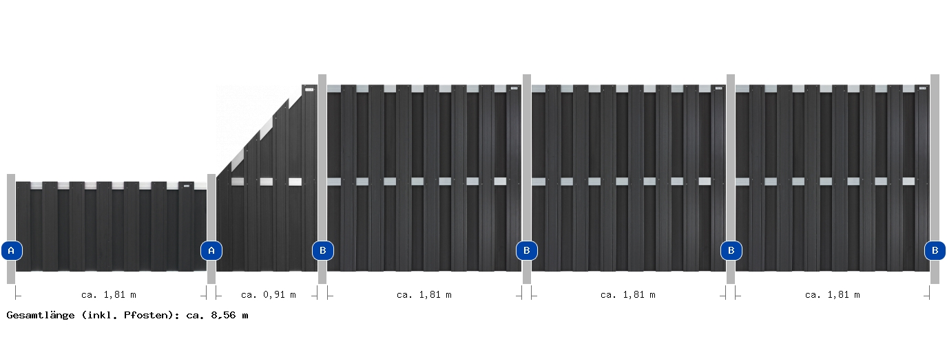 8,56m Zaun Elephant Design WPC anthrazit-alu - ME30697
