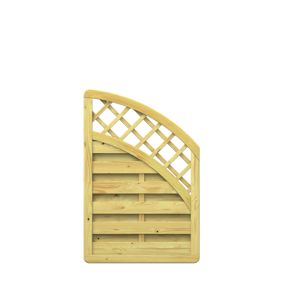 Das Lamellenzaun-Modell kommt in einer attraktiven abgerundeten Form daher und zeichnet sich durch seine hochwertige Konstruktion aus druckimprägniertem Nadelholz aus. Die Füllung dieses Zäuns besteht aus Lamellen und einem Ziergitter-Ausschnitt, wobei die Profile sauber gehobelt und waagerecht angeordnet sind. Hinsichtlich der Eigenschaften ist bemerkenswert, dass im unteren Rahmen Wasserablauföffnungen vorgesehen sind, um einen optimalen Holzschutz zu gewährleisten.