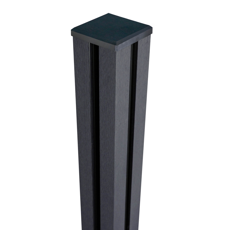 Zum Einsatz kommt ein besonders langlebiges Material: BPC, ein Compound aus rund 60% Bambus und 40% Kunststoff. Dank dieser Materialcomposition ist der Pfosten äußerst widerstandsfähig gegenüber Witterungseinflüssen und besticht zudem durch seine attraktive anthrazitgraue Farbgebung.