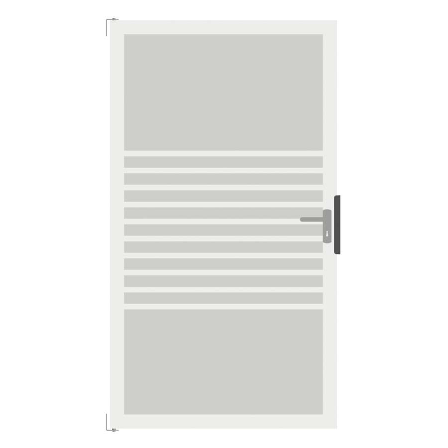 Das Groja Ambiente Glastor DIN rechts mit den Maßen von ca. 180cm Höhe und ca. 100cm Breite gehört zur Produktserie Ambiente Glas. Das Tor verfügt über einen Rahmen aus qualitativ hochwertigem Aluminium (EV1) und eine Füllung aus satiniertem Einscheiben-Sicherheitsglas (ESG) mit elegantem Streifenmuster. Dieses Produkt ist im Rahmen der Serie als DIN rechts Anschlag ausgeführt, was sowohl Design als auch Funktion perfekt in Einklang bringt.