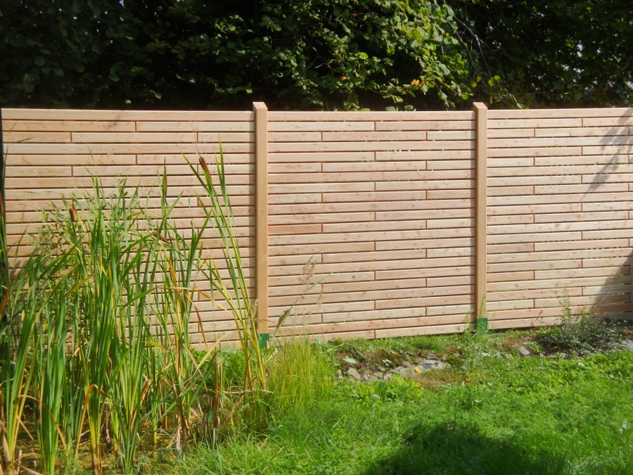 Eleganter Sichtschutz mit dem Massivzaun Rhombus-Sectio gerade Lärche 180x180 cm