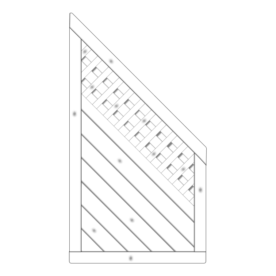 Ein optisches und funktionales Highlight des Sichtschutzzaun Lyon ist der integrierte Rankgitterausschnitt. Die Anordnung der Holzelemente erfolgt diagonal, was dem Zaun ein modernes und gleichzeitig zeitloses Erscheinungsbild verleiht. Die Maschenweite des Rankgitters beträgt ca. 60 x 60 mm. Diese Struktur bietet kletternden Pflanzen einen guten Halt und ermöglicht eine individuelle Begrünung des Zauns, ohne die Gesamtstabilität zu beeinträchtigen. Gleichzeitig sorgt der Rankgitterbereich für eine angenehme visuelle Auflockerung des Sichtschutzfeldes.