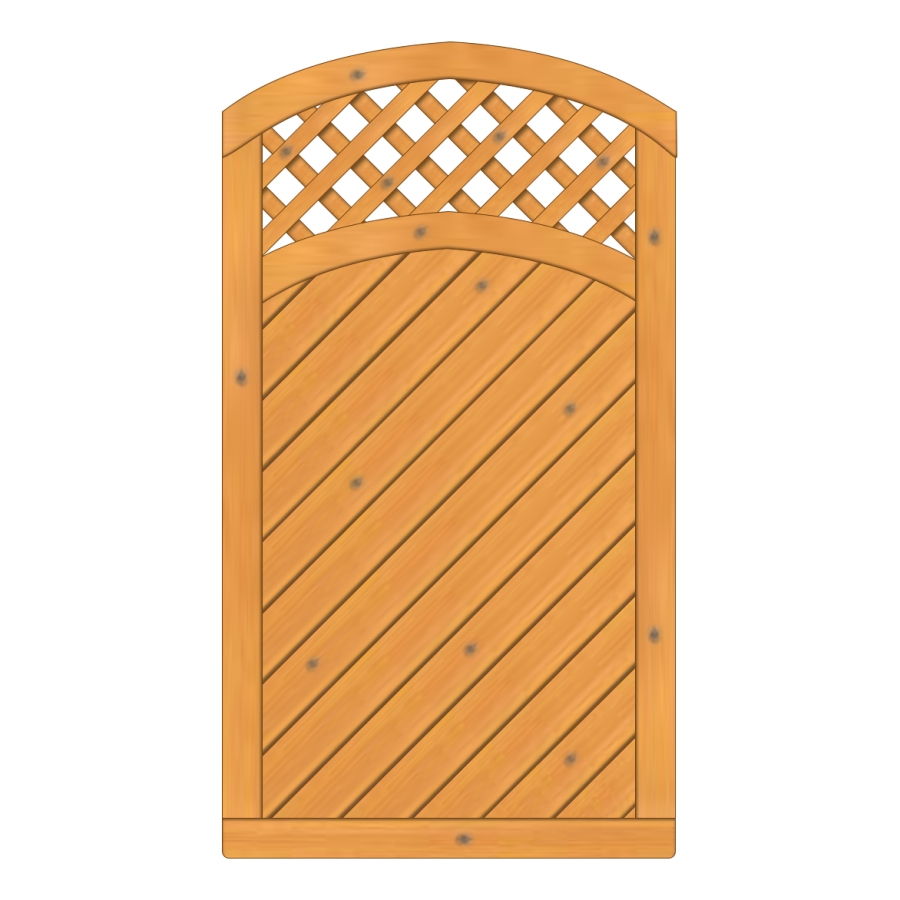 Das Tor Lyon Fichte farbbehandelt Pinie 100-180-165cm mit Rankgitter ohne Beschlag verfügt über einen stabilen Rahmen mit Leimholzbogen, der dem Tor seine charakteristische Rundbogenform verleiht. Die gehobelten Profile sorgen für eine glatte, pflegeleichte Oberfläche und eine wertige Anmutung. Die Anordnung der Elemente ist diagonal, was dem Zauntor eine dekorative, lebendige Optik verleiht. Eine besondere gestalterische Eigenschaft ist der integrierte Rankgitterausschnitt, der sich hervorragend für Kletterpflanzen eignet und so eine naturnahe Begrünung direkt im Torbereich ermöglicht. Damit bildet das Zauntor einen harmonischen Übergang zwischen Eingangsbereich und Garten und lässt sich ideal mit weiterem Zubehör wie dem Beschlagssatz für Rundbogen-Einzeltore links Stahl galv. verz. schwarz kombinieren.