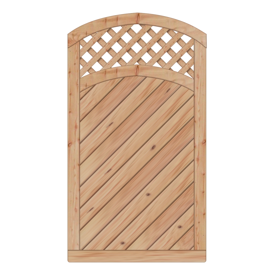 Das Tor Lyon Lärche-Douglasie mit Rankgitter 100-180-165cm ohne Beschlag besteht aus naturbelassener Lärche und Douglasie. Der stabile Rahmen ist mit einem formschönen Leimholzbogen ausgestattet, während die Füllung aus passgenauen Nut-Feder-Brettern gefertigt ist. Alle Verbindungselemente bestehen aus hochwertigem Edelstahl, was eine hohe Langlebigkeit und Stabilität sicherstellt. Die Profile sind gehobelt und besitzen eine glatte, verwindungsarme Oberfläche. Durch die Anordnung der Flächen in diagonaler Form und den Rankgitterausschnitt entsteht eine dekorative, gleichzeitig funktionale Fläche, die sich hervorragend für Kletterpflanzen eignet.