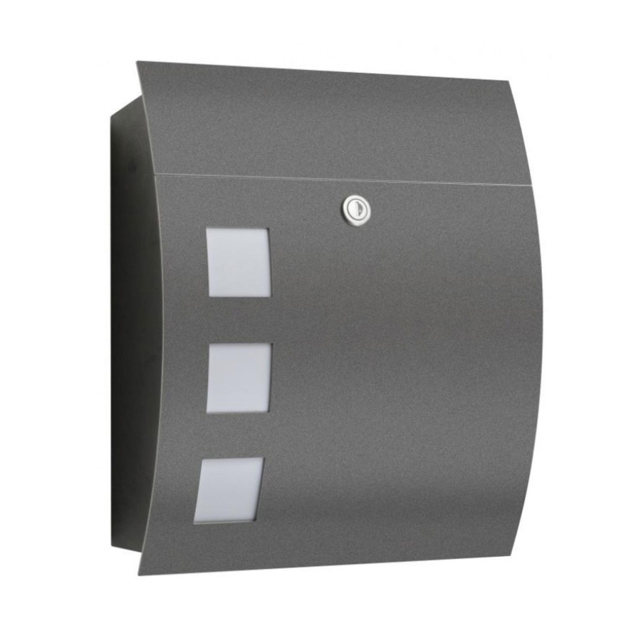 Wohl eines der herausstechenden Merkmale dieses Modells ist das leicht gewölbte Design. Kombiniert mit den drei übereinander angeordneten Fensterausschnitten aus weißem Opalglas entsteht ein Äußeres, das dem CMD Briefkasten 76 eine hochwertige und edle Optik verleiht. Mit einer Breite von ca. 31 cm, einer Tiefe von ca. 14 cm und einer Höhe von ca. 40 cm fügt sich dieser Briefkasten harmonisch in jede Umgebung ein.