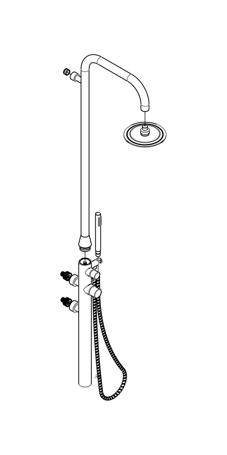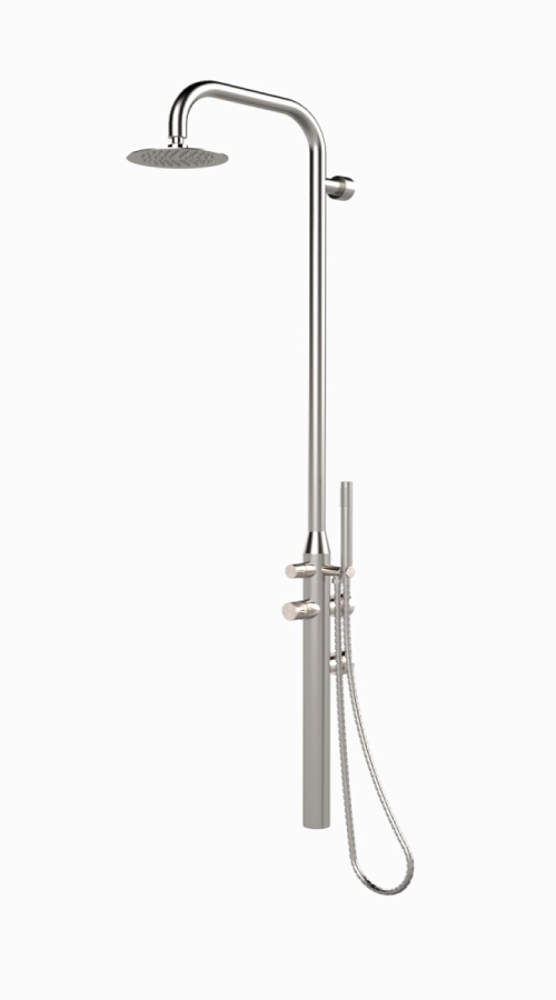 Die Gartendusche Juist ist eine Kalt- und Warmwasserdusche, ausgestattet mit einem Umsteller für Kopf- und Handbrause sowie flexible Schläuche für Kalt- und Warmwasseranschluss. Die Dusche verfügt zudem über eine Einhebel-Mischbatterie, die eine einfache Einstellung der gewünschten Wassertemperatur ermöglicht. Diese Funktionalitäten machen die Gartendusche zu einer idealen Wahl für Ihren Garten.