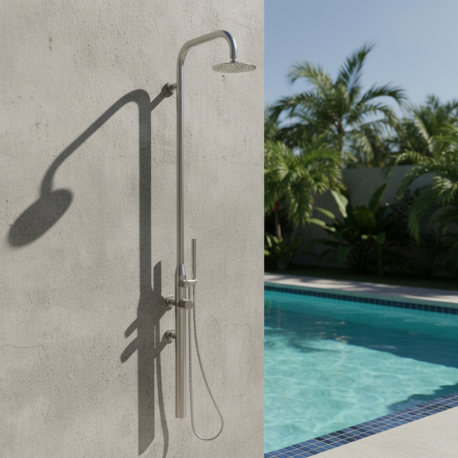 Fügen Sie Eleganz und Komfort in Ihren Garten mit der edel aussehenden Gartendusche Juist von Ideal. Die Dusche ist nicht nur visuell ansprechend, sondern auch äußerst funktional und anpassungsfähig aufgrund ihres ansprechenden Designs und ihrer hochwertigen Materialien. Sie ist definitiv ein Muss für jede private Schwimmbadanlage oder Garten.