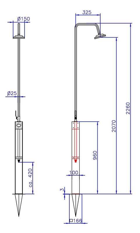 Die Ideal Gartendusche Altena ist mit einem Kaltwasseranschluss ausgestattet und wird direkt an den Gartenschlauch angeschlossen. Die Ausstattung umfasst einen Kugelhahn und einen Duschkopf. Die Befestigung erfolgt einfach und sicher mit einem Erdspieß, der im Lieferumfang enthalten ist. So ist die Gartendusche auch flexibel in verschiedene Einsatzbereiche, z.B. private Schwimmbäder und Gärten, einsetzbar.