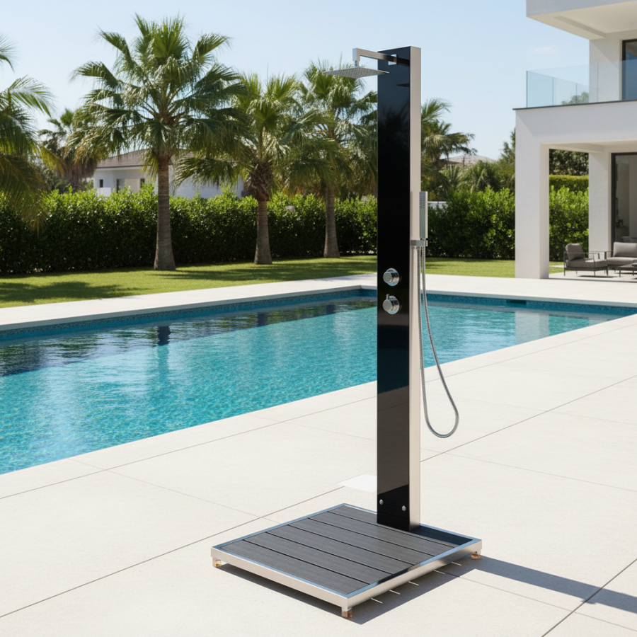 Die Ideal Gartendusche Kuba ist das perfekte Produkt für diejenigen, die ihren Garten oder ihr privates Schwimmbad aufwerten möchten. Hier trifft ästhetisches, klares Design auf hochwertige Qualität.