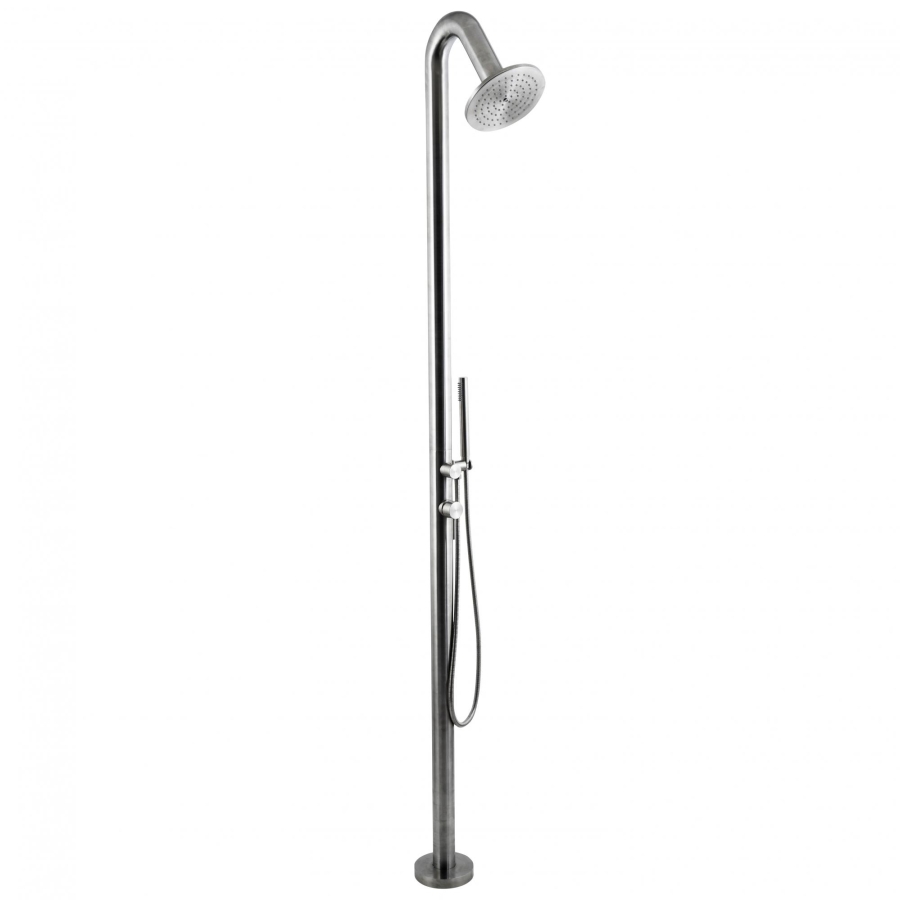 Die Ideal Gartendusche Sophie ist eine exquisite Bereicherung für jeden Garten. Ihr elegantes und edles Erscheinungsbild wird durch eine Säule aus V2A Edelstahl und Armaturen aus gebürstetem Nickel hervorgehoben. Mit einer Höhe von etwa 220 cm und einen Durchmesser von etwa 6 cm für die Säule und etwa 20 cm für den Duschkopf, stellt die Ideal Gartendusche Sophie eine imposante Erscheinung dar. Die Artikelnummer für dieses luxuriöse Modell ist 706586.