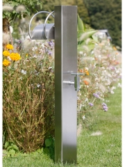 Die Wasserzapfstelle von Ideal Eichenwald wird durch ihr eckiges Design und die massive Edelstahlsäule unterstrichen. Der moderne Wasserhahn rundet das Bild dieser eleganten Zapfsäule ab. Einfache Handhabung und hohe Funktionalität machen diese Wasserstelle so begehrt. Sie können diese sehr vielseitige Zapfsäule beispielsweise nutzen, um sich an einem warmen Sommertag in Ihrem Garten zu erfrischen, oder auch um das Gießwasser für Ihre Gartenpflanzen in unmittelbarer Nähe zu zapfen.