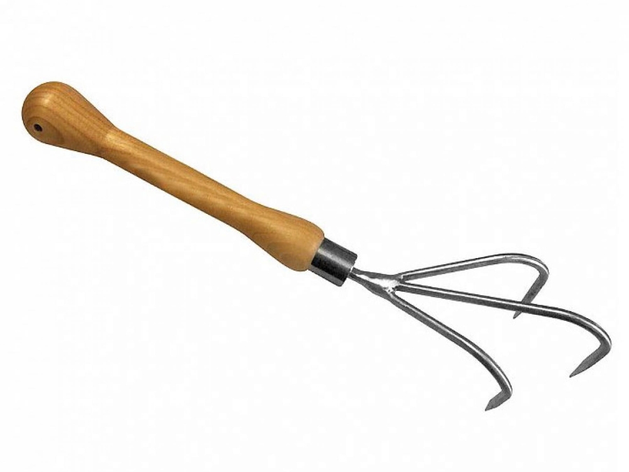 Der Stiel des Handkultivators ist aus hochwertigem Kirschholz gefertigt, das nicht nur robust, sondern auch ergonomisch geformt ist, um einen angenehmen Griff zu bieten und die Handhabung zu erleichtern. Die Zinken und das Blatt bestehen aus feinstem rostfreiem Edelstahl, speziell designed, um mit Präzision und Effektivität durch verschiedene Bodenarten zu dringen.