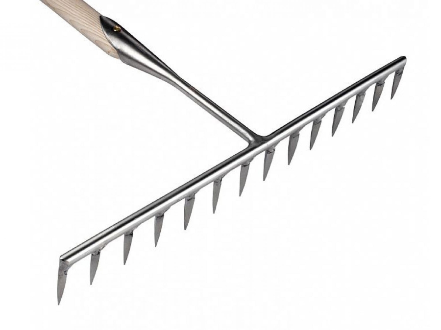 Der Sneeboer Kiesrechen 6012 ist eine hochqualitative Gartenausrüstung, die in jedem Garten unverzichtbar ist. Er verfügt über 14 geschärfte Zinken, die ein sauberes und müheloses Arbeiten garantieren. Dieser Kiesrechen eignet sich besonders zum Einebnen großer Flächen von Kies, Sand, Erde oder Schotter. Das massive und rostfreie Edelstahlblatt wird bei Sneeboer von Hand geschmiedet und geschliffen, was diesen Kiesrechen zu einem langlebigen Werkzeug in Ihrem Garten macht.