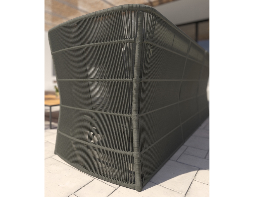 Das Gestell des Sofas wurde aus pulverbeschichteten Aluminium gefertigt, das Langlebigkeit und Verlässlichkeit sicherstellt. Die Bespannung aus Rope und die edle Farbe Platinum (grau) verleihen dem Sofa ein anspruchsvolles und zeitgemäßes Erscheinungsbild. Ergänzt wird dies durch die Polster in einer hellgrauen Farbe. Das Sofa beinhaltet zudem Kissenbezüge, die zu 100 % aus Polypropylen bestehen, ein Material bekannt für seine Unempfindlichkeit und Haltbarkeit.