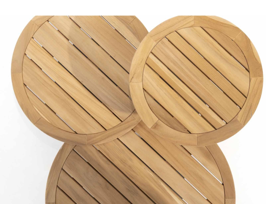 Ein wesentliches Merkmal dieses Tisches ist die ausgesuchte Materialkombination. Der Tisch verfügt über ein Gestell aus Edelstahl und eine Tischplatte aus natürlichem Teakholz, die einen natürlich-eleganten Kontrast zum anthrazitfarbenen Gestell bildet. Das Teakholz stammt dabei aus kontrollierten Plantagen und wurde nicht nur wegen seiner Optik, sondern auch wegen seiner Robustheit ausgewählt.