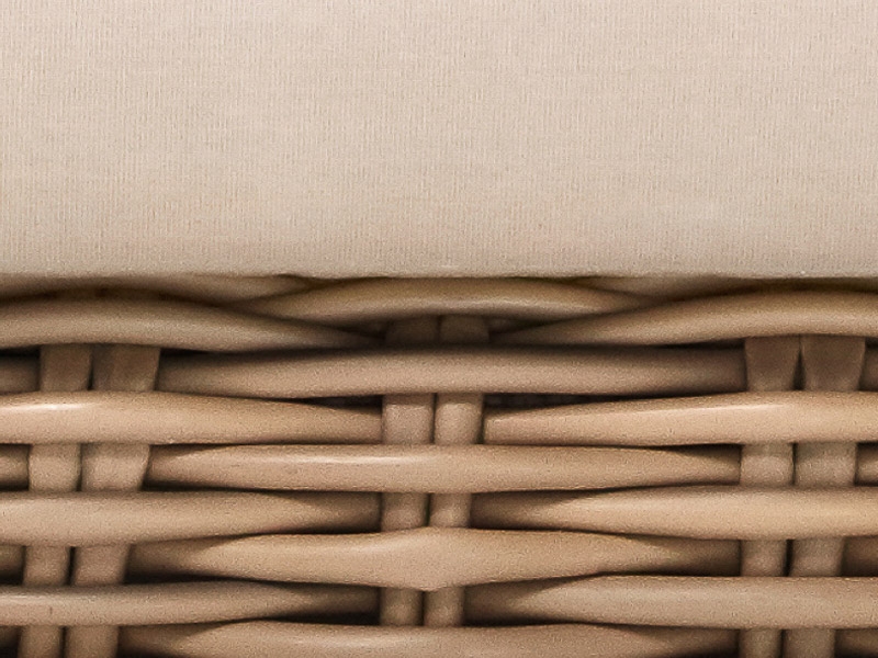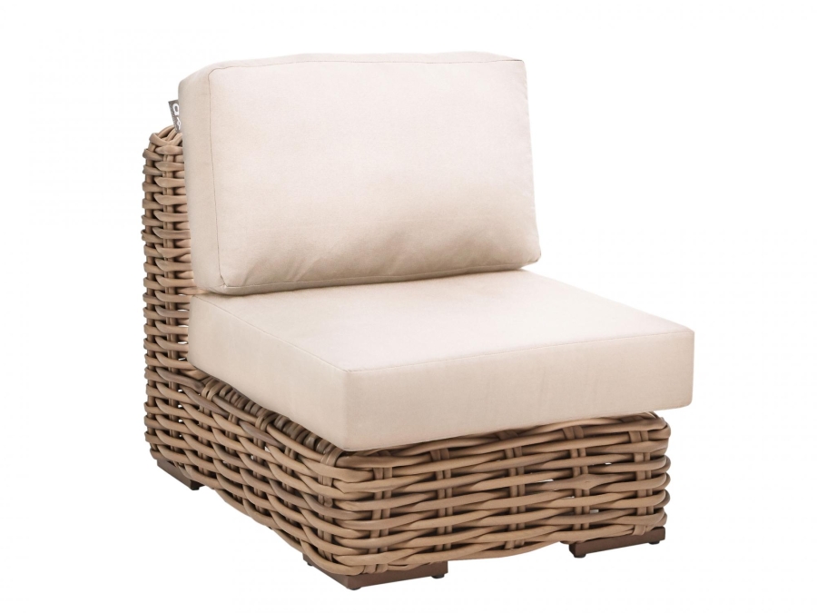 Das Mittelmodul besteht aus einem robusten, aber dennoch leichten Aluminium Gestell, das mit einem wunderschönen Polyrattan Rundgeflecht im Farbton Kubu verkleidet ist. Dieses Geflecht weist eine Materialstärke von 15 mm auf und sorgt dadurch für eine überzeugende Ästhetik und Langlebigkeit des Produkts.