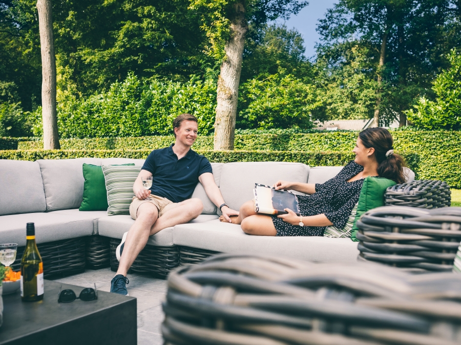Zusätzlich können Sie das Sofa mit schönen aufwerten und für einen zusätzlichen Schutz unserer Gartenmöbel haben wir passende Schutzhauben für Sie.