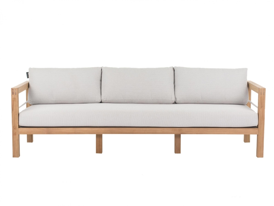Das Sofa ist aus hochwertigem Plantagen-Teakholz gefertigt und wurde ausschließlich mit Materialien bester Qualität ausgestattet. Der Polypropylen-Bezug für die Kissen besteht zu 100 %. Somit ist es nicht nur langlebig und widerstandsfähig, sondern auch besonders pflegeleicht. Perfekt für den Einsatz als Loungemöbel!