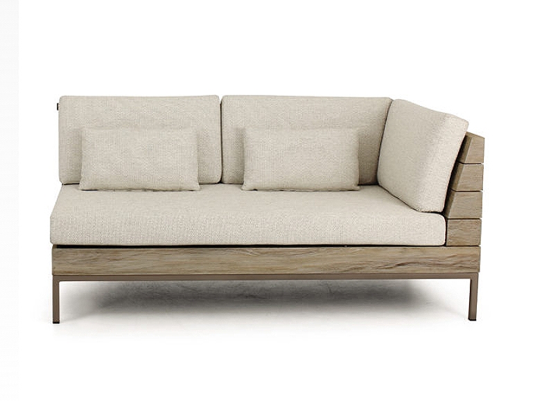 Der robuste Rahmen aus Teakholz, kombiniert mit einem gestrahlten Aluminiumgestell, bringt Stabilität und Langlebigkeit. Der Stoffbezug besteht vollständig aus Polypropylen, was ihn besonders widerstandsfähig gegen Witterungseinflüsse und Abnutzung macht. Die Pulverbeschichtung des Gestells in Taupe sorgt für zusätzlichen Schutz und verleiht dem Sofa den letzten Schliff.