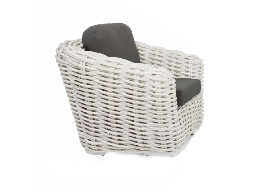 Der Apple Bee Palm Bay Lounge Chair ist nicht nur ein einfacher Gartenstuhl. Seine Einzigartigkeit liegt in seinem besonderen Design und den ausgewählten Materialien. Die spezielle Materialstärke des Rundgeflechts von 20 mm, zusammen mit dem Polyrattan und seinem Aluminiumgestell, garantiert einen Gartenstuhl der Extraklasse. In der attraktiven Geflechtfarbe white wash, ausgestattet mit einem Dimgray Polster, lädt dieser Loungesessel zum Verweilen ein.