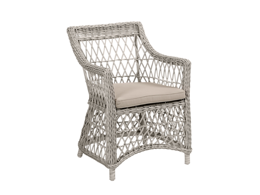 Der Brafab Beatrice Diningsessel weiß ist für den dauerhaften Einsatz im Freien konzipiert. Dank seiner Eigenschaften witterungsbeständig und UV-beständig bleibt das Polyrattan-Geflecht auch bei intensiver Sonneneinstrahlung und wechselnden Witterungsbedingungen formstabil und farbbeständig. Das über einen Aluminiumrahmen locker geflochtene, 5,3 mm starke Kunstrattan sorgt nicht nur für eine charakteristische Vintage-Optik, sondern bietet auch eine langlebige Oberfläche mit geringem Pflegeaufwand. Damit eignet sich der Diningsessel ideal für Terrassen, Balkone oder Gartenbereiche, die häufig genutzt werden und in ein stimmiges Ensemble mit [[Gartenbank]] oder [[Stapelsessel]] integriert werden sollen.
