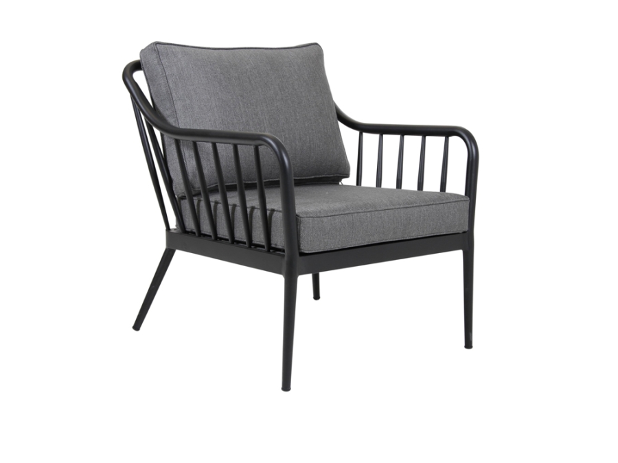 Brafab Coleville Armlehnstuhl Aluminium schwarz inkl. Kissen – moderner Gartenstuhl mit zeitloser Form und hohem Komfort