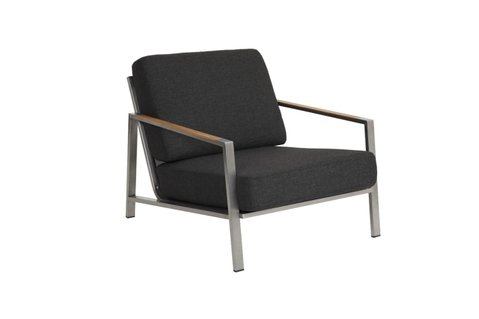 Mit einem Gestell aus Edelstahl und Armlehnen und Tischplatten aus hochwertigem Teakholz ist dieses Lounge-Set robusten und langlebig. Die Textil-Bespannung der Möbel ist in anthraziter Farbe gehalten, ebenso wie die gemütlichen Polster, die bereits im Lieferumfang enthalten sind.