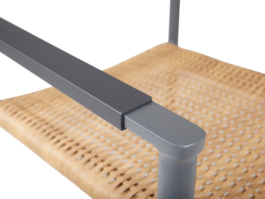 Die Hauptmaterialien dieses Gartenmöbel-Sets sind Aluminium, Metall und Geflecht. Das Aluminiumgestell ist pulverbeschichtet, was die Witterungsbeständigkeit und UV-Beständigkeit des Sets weiter verbessert. Das Geflecht aus Kunstrattan unterstreicht nicht nur den visuellen Charme, sondern verspricht eine pflegeleichte Handhabung und Langlebigkeit.