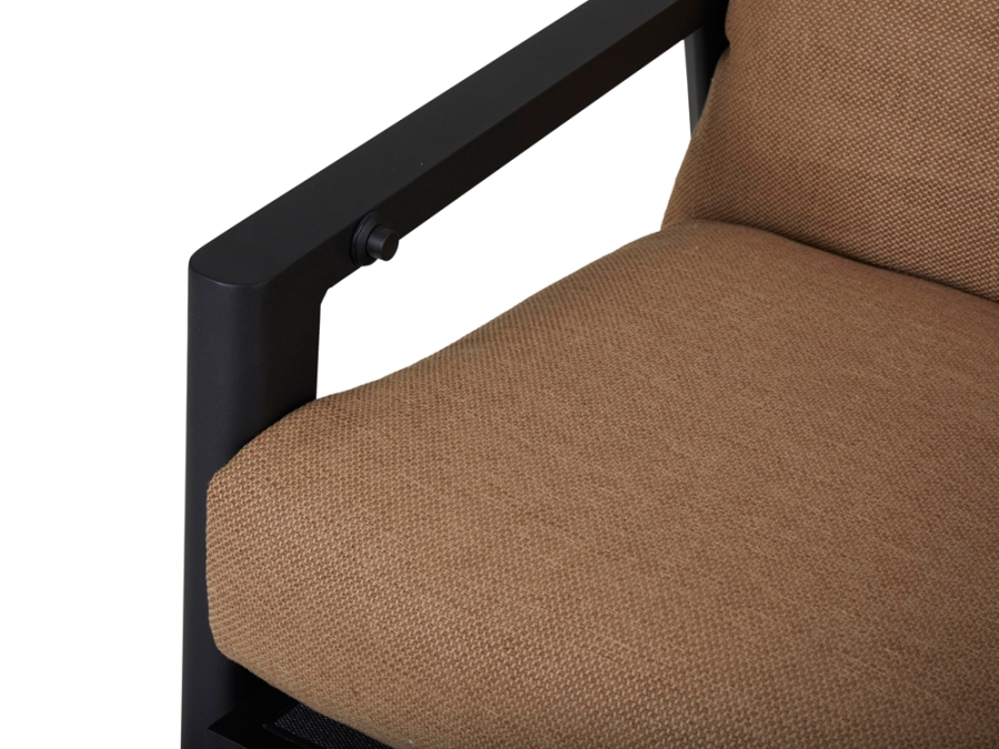 Dieser Loungesessel ist aus robustem Aluminium gefertigt, welches in schwarz pulverbeschichtet ist und dadurch Witterungsbeständigkeit gewährt. Der Sessel bietet ein Graphic Outdoor-Gewebe als Rückenlehne, das gleichzeitig für eine bequeme Sitzerfahrung sorgt und gleichzeitig das elegante Design hervorhebt. Hinzukommt, dass die Bezüge der Kissen aus 100% Acryl und die Bespannung zu 100% aus Polyester besteht, was diese langlebig und pflegeleicht macht. Die Sitzpolster sind in Cinnamon ausgeführt, die den Stuhl optisch aufwerten.