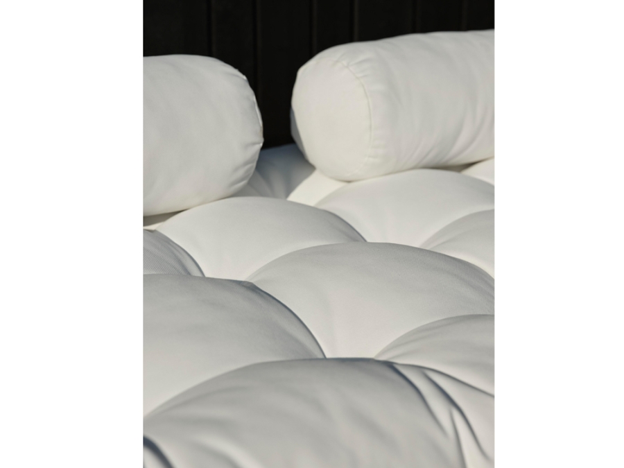 Das Gestell des Brafab Vallda Daybed Naturrattan besteht aus hochwertigem Rattan in natürlicher Gestellfarbe. Es handelt sich um Naturrattan, also geflochtenes, ungeschältes Rattan, das durch seine lebendige Struktur und leichte Unregelmäßigkeiten seinen charakteristischen Charme erhält. Die Polster verfügen über einen Bezug aus ca. 100 % Polypropylen, ein strapazierfähiges, pflegeleichtes Synthetikmaterial. Die Polsterfarbe Weiß setzt einen klaren, frischen Kontrast zum warmen Naturton des Geflechts. Aufgrund der Materialeigenschaften empfiehlt sich eine Nutzung im Innenraum oder im geschützten Außenbereich, etwa unter einem Vordach oder einer überdachten Terrasse, damit das Brafab Vallda Daybed Naturrattan langfristig seine Optik und Stabilität bewahrt.