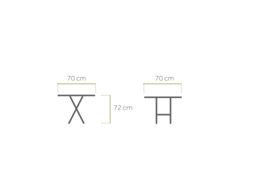 Mit einer Gesamtbreite von ca. 70 cm und einer Gesamttiefe von ca. 70 cm bietet der Gartentisch genügend Platz für entspannte Stunden im Freien. Die Gesamthöhe von ca. 72 cm sorgt für eine komfortable Tischhöhe. Trotz seines stabilen Aufbaus wiegt der Tisch lediglich ca. 8 kg, was das Handling und die Flexibilität erleichtert.