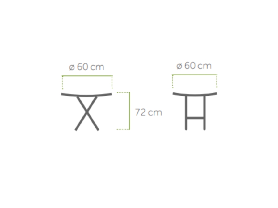 Der Gartentisch hat eine Gesamtbreite und -tiefe von jeweils ca. 60 cm, was ihn zu einer idealen Lösung auch für kleinere Balkone oder Terrassen macht. Mit einer Gesamthöhe von ca. 72 cm bietet dieser Tisch den perfekten Komfort für fröhliche Stunden im Freien. Der Tisch ist leicht und hat ein Gewicht von nur ca. 5 kg, was ihn besonders einfach zu transportieren und zu verstauen macht.