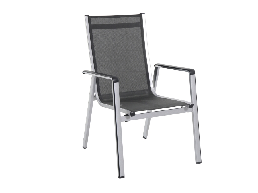 Der Rahmen des Stuhles besteht aus hochwertigem Aluminium, das robust und langlebig ist. Die Oberfläche ist mit einer speziellen Elotherm®-Beschichtung versehen, die den Sessel zusätzlich schützt. Die Bespannung besteht aus einem Textilgewebe, das sehr bequem ist und  aus ca. 100 % Polyester gefertigt wurde. Diese Materialwahl sorgt für eine angenehme Sitzfläche und eine lange Lebensdauer des Sessels.