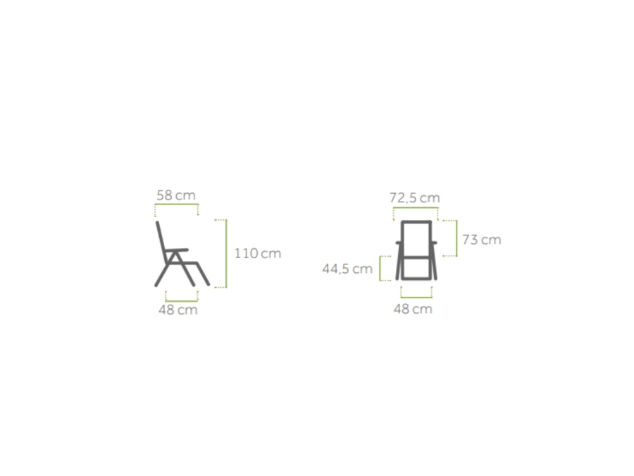Mit einer Gesamtbreite von ca. 72,5 cm, einer Tiefe von ca. 58 cm und einer Höhe von ca. 110 cm bietet der Relaxsessel ausreichend Platz für entspannte Stunden im Freien. Trotz seiner Stabilität wiegt er nur ca. 9 kg, was ihn leicht handhabbar und verstaubar macht.