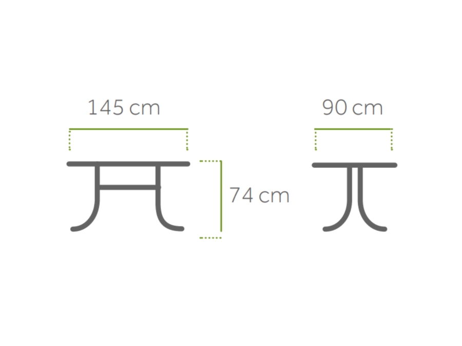 Mit einer Gesamtbreite von ca. 145 cm, einer Gesamttiefe von ca. 90 cm und einer Gesamthöhe von ca. 74 cm bietet dieser Tisch ausreichend Platz für gemütliche Abende im Freien. Trotz seiner stabilen Konstruktion bleibt der Tisch mit einem Gewicht von ca. 19 kg leicht genug, um ihn bequem umzustellen.
