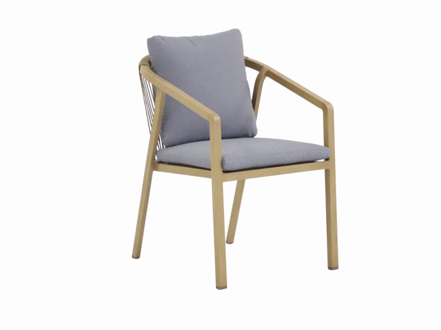 Der Stapelstuhl Kanto der Marke Creador gehört zur renommierten Kanto-Serie und ist speziell als Gartenstuhl entwickelt worden. Mit seiner Artikelnummer 548107 besticht dieser Stuhl durch ein robustes und elegantes Gestell aus Aluminium, das zusätzlich pulverbeschichtet wurde. Diese hochwertige Beschichtung verstärkt den Schutz vor Witterungseinflüssen und verleiht dem Stuhl eine stilvolle Optik in Braun, Holzoptik. Die Polsterfarbe in Grau sorgt für einen harmonischen und modernen Look.