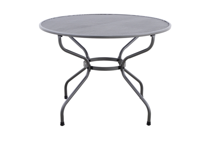 Die sorgfältige Materialauswahl garantiert Langlebigkeit und robusten Schutz gegen jegliche Witterungseinflüsse. Das Gestell besteht aus einer Kombination von Aluminium, Stahl und Streckmetall, die eine ausgeglichene Mischung aus Stabilität und Leichtigkeit bietet. Die Tischplatte ist ebenfalls aus Streckmetall gefertigt und erstrahlt in einem eleganten eisengrauen Design. Sowohl das Gestell als auch die Oberfläche sind mit hochwertigen Beschichtungen wie Elotherm und Thermosint versiegelt.