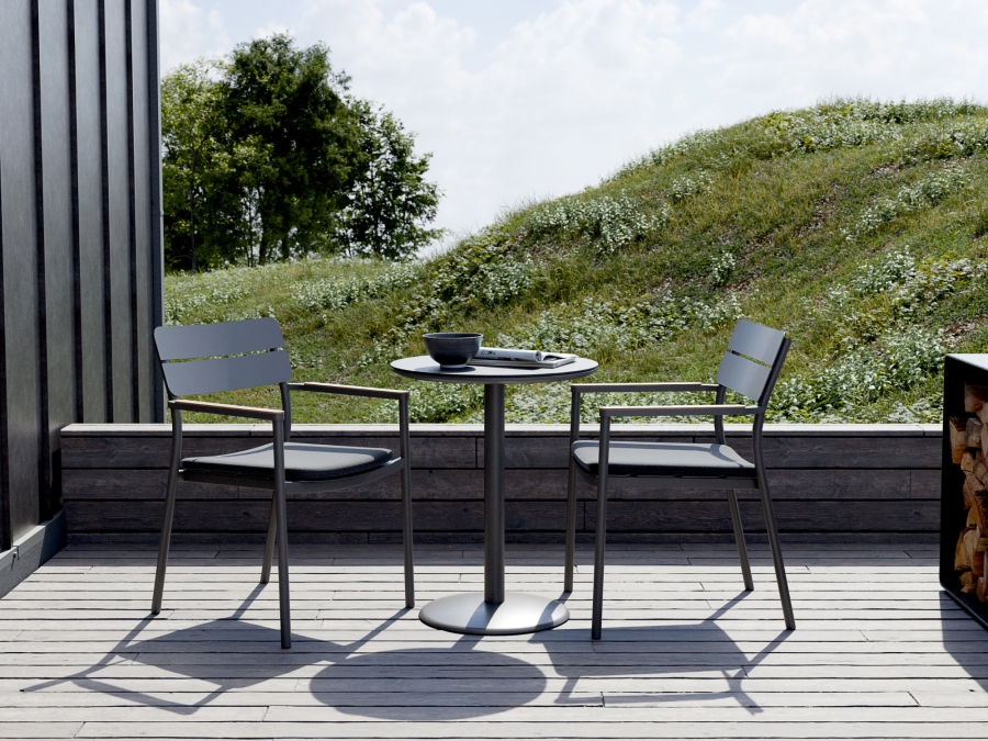 Durch seine Kombination aus robustem Aluminium, der neutralen Gestellfarbe Anthrazit und den Armlehnen in Holzoptik ist der Gartenstuhl vielseitig einsetzbar. Er eignet sich für private Gärten, Terrassen, Loggien und Balkone ebenso wie für wettergeschützte Bereiche in Wintergärten.