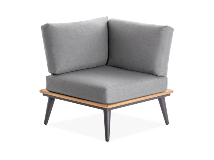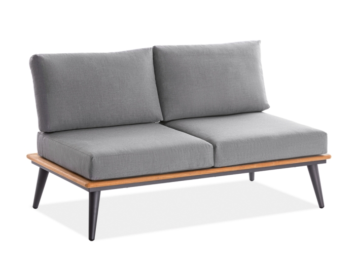 Die harmonische Kombination aus Komfort und Ästhetik zeichnet die von der Marke Niehoff Garden produzierte Lounge-Gruppe aus. Die Serie Serra begeistert mit dicken, bequemen Polstern, die zum Verweilen einladen. Die Gestelle, hergestellt aus anthrazit pulverbeschichtetem Aluminium, zeigen Akzente aus Plantagen-Teakholz und verleihen der Lounge-Gruppe ihre charakteristische Optik. Besonders angesagt sind die wasserabweisenden, hellgrauen Polsterbezüge, die selbst nach leichten Regenschauern im Handumdrehen wieder einsatzbereit sind.