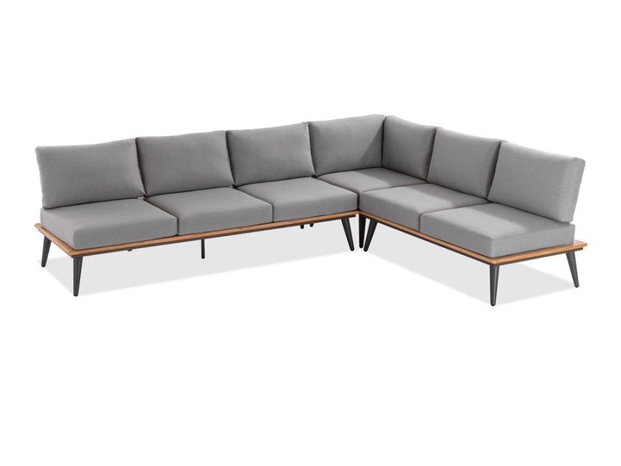 Die Lounge-Gruppe ist speziell für Balkone geeignet, sodass Sie in der Lage sind, auch kleinsten Außenbereich in eine Wohlfühloase zu verwandeln. Das Gartenmöbel-Set ist aus robustem Metall und Aluminium gefertigt, das mühelos dem wechselhaften Outdoor-Klima standhält. Hinzu kommen Akzente aus wertvollem Teakholz, diese runden das Design der Balkonmöbel ab und sorgen für eine natürliche Optik.