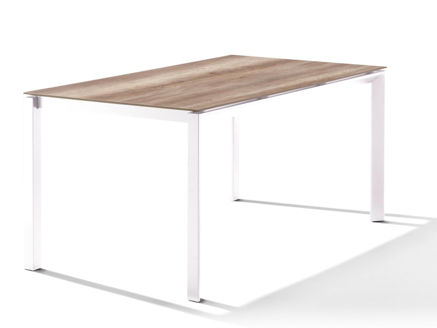 Sieger Gartentisch 160x90cm Polytec Eiche hell- Gestell Weiß für stilvolle Stunden im Freien