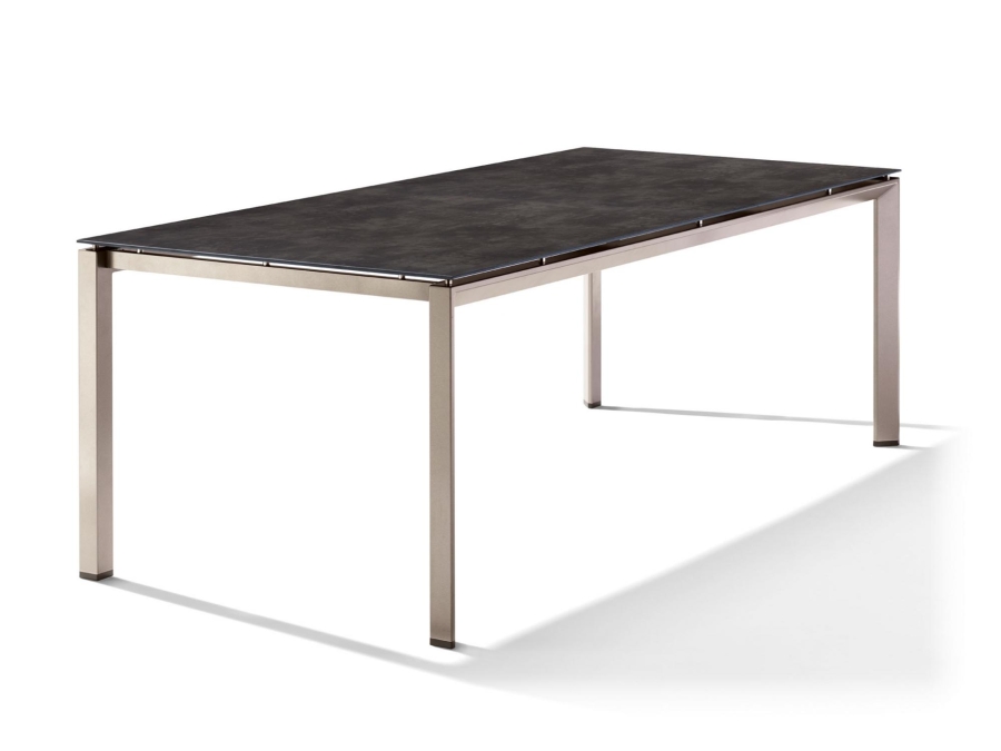Wodurch zeichnet sich der Sieger Gartentisch 220x100cm Polytec Beton dunkel-Gestell Champagner aus?