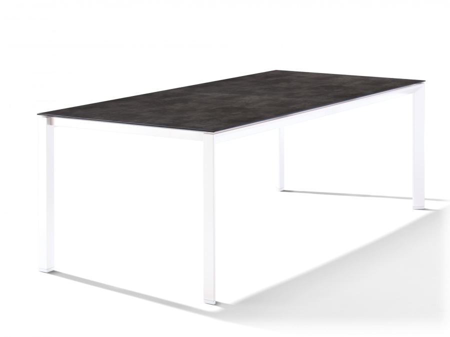 Sieger Gartentisch 220x100cm Polytec Beton dunkel mit weißem Gestell – stilvoller Mittelpunkt für Terrasse und Garten