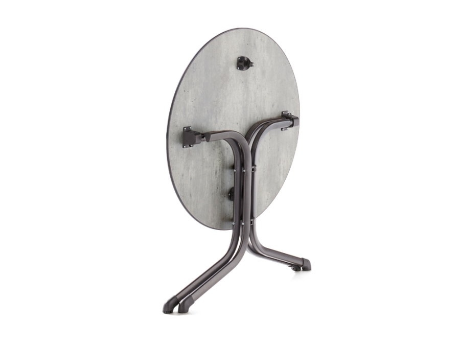 Sieger Klapptisch Polytec Beton hell 85cm rund Gestell eisengrau – der klappbare Gartentisch für stilvolle Outdoorbereiche