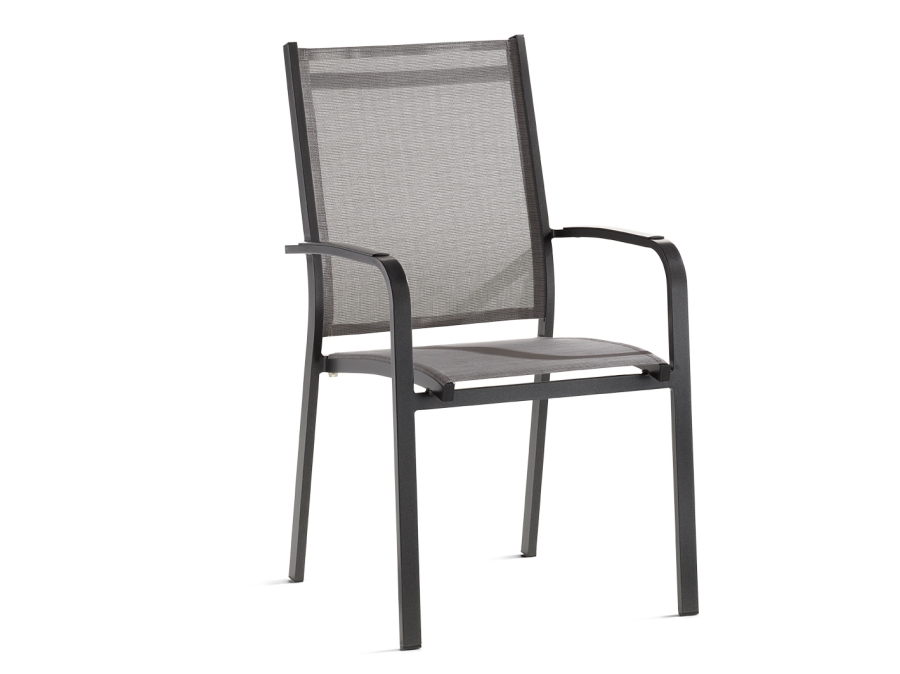 Sieger Meran Stapelsessel Aluminium eisengrau - Bespannung hellgrau für komfortables und stapelbares Sitzen im Garten